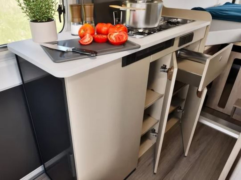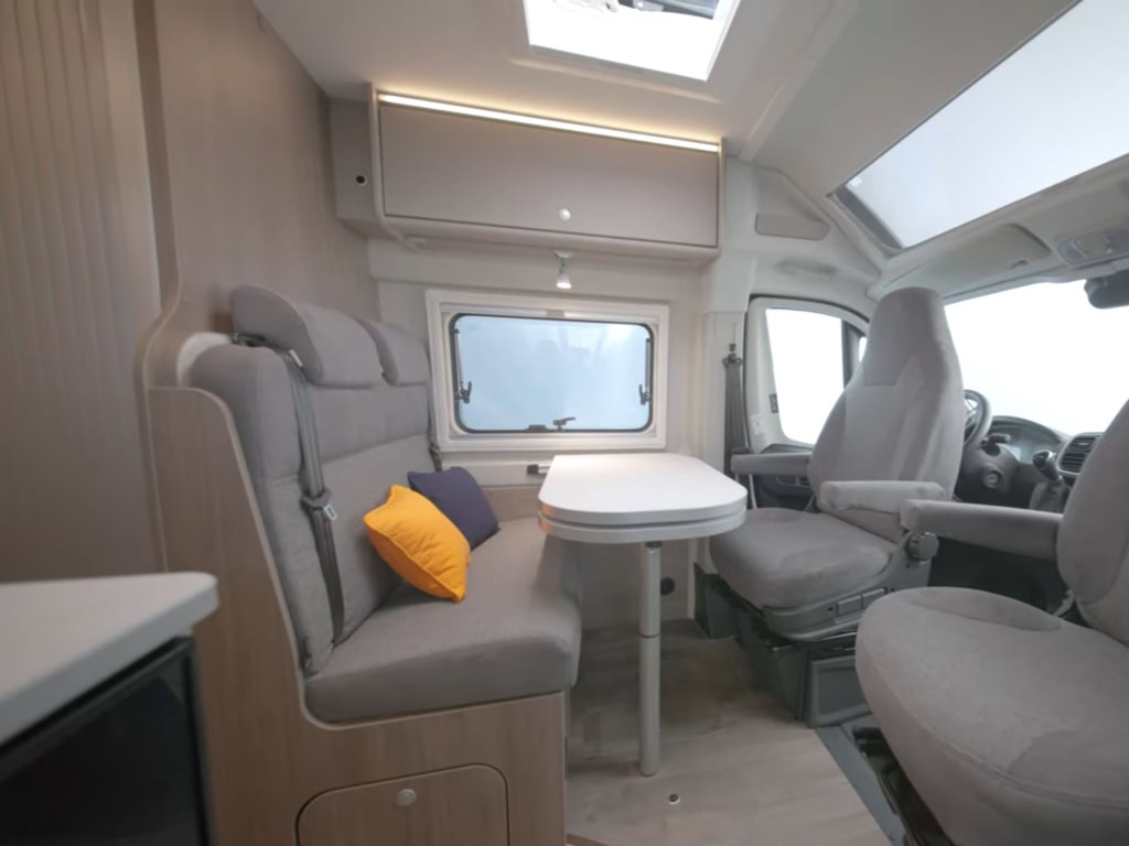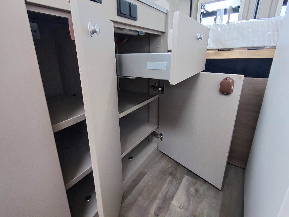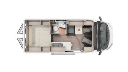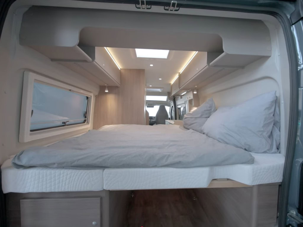 CV600 Pro+: Euer wendiger kurzer 6 Meter Kastenwagen mit Querbett im Heck für bis zu 3 Personen mit Schwenkbad mit Schiebetür + Panoramafenster über Fahrer & Beifahrersitz